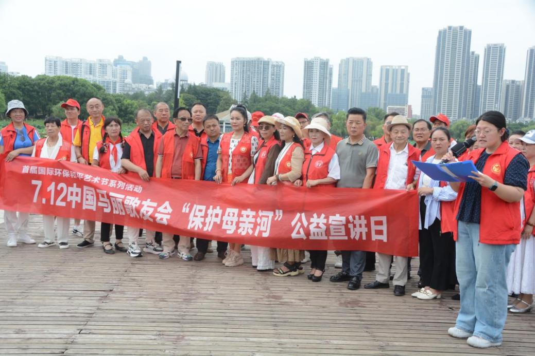湖北省长江生态保护基金会中华鲟保护项目宣讲专家团代表青葙率先致辞,强调长江生态保护的紧迫性;随后,首届国际环保和平艺术节系列活动组委会主席、著名青年歌唱家马丽女士作为国际环保公益使者,深刻阐释了“保护母亲河”活动的公益愿景。武汉民航社区党委书记戴劲松分享了基层环保实践,而资深艺评人张智勇教授则从人文学术视角,探讨了环保、和平与艺术的融合路径。马丽歌友会企业家代表——武昌区政协委员吴瑞华(武汉瑞华医院院长)、张慈君(武汉爱美仕医美董事长)、杨建学(湖北艾之堂有限公司董事长),结合行业实践,诠释了企业深耕环保责任的理念;歌友代表张玉娟系统汇报了歌友会多年来的国际环保公益成果。大家共同表达对环保事业的支持与承诺。他们纷纷表示,母亲河是中华文明的摇篮,保护好河流生态系统,不仅关乎当代人的生活质量,更关系到子孙后代的生存环境。作为社会力量的一份子,应积极履行社会责任,投身生态治理,为美丽中国贡献力量。