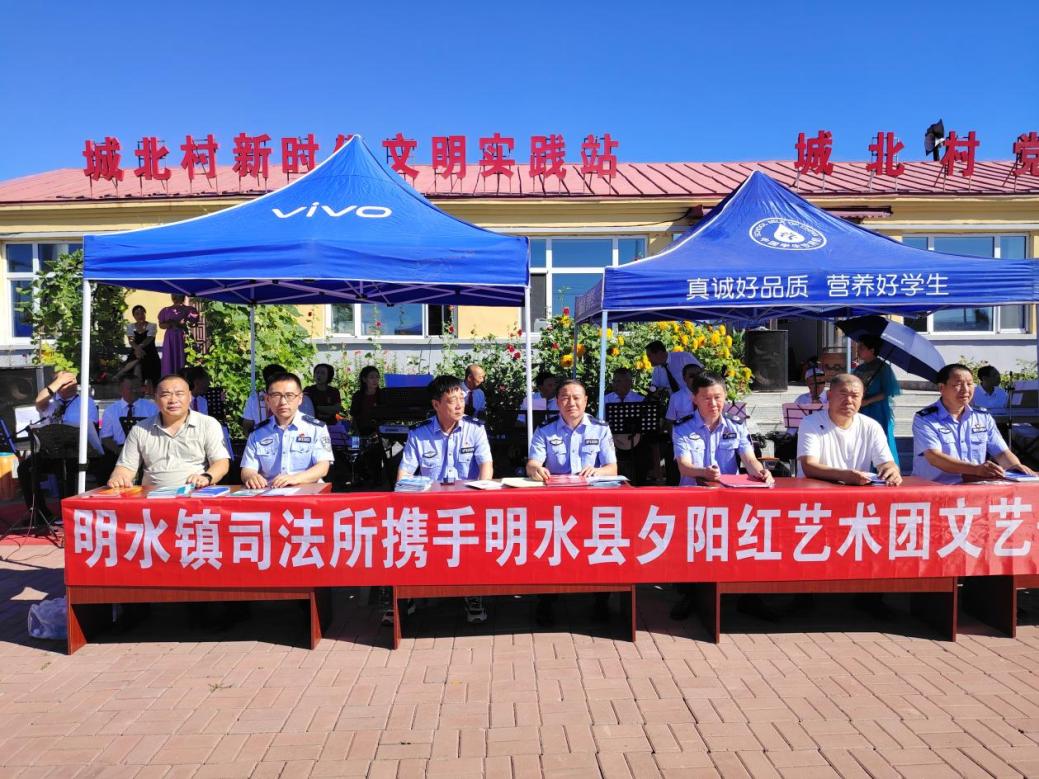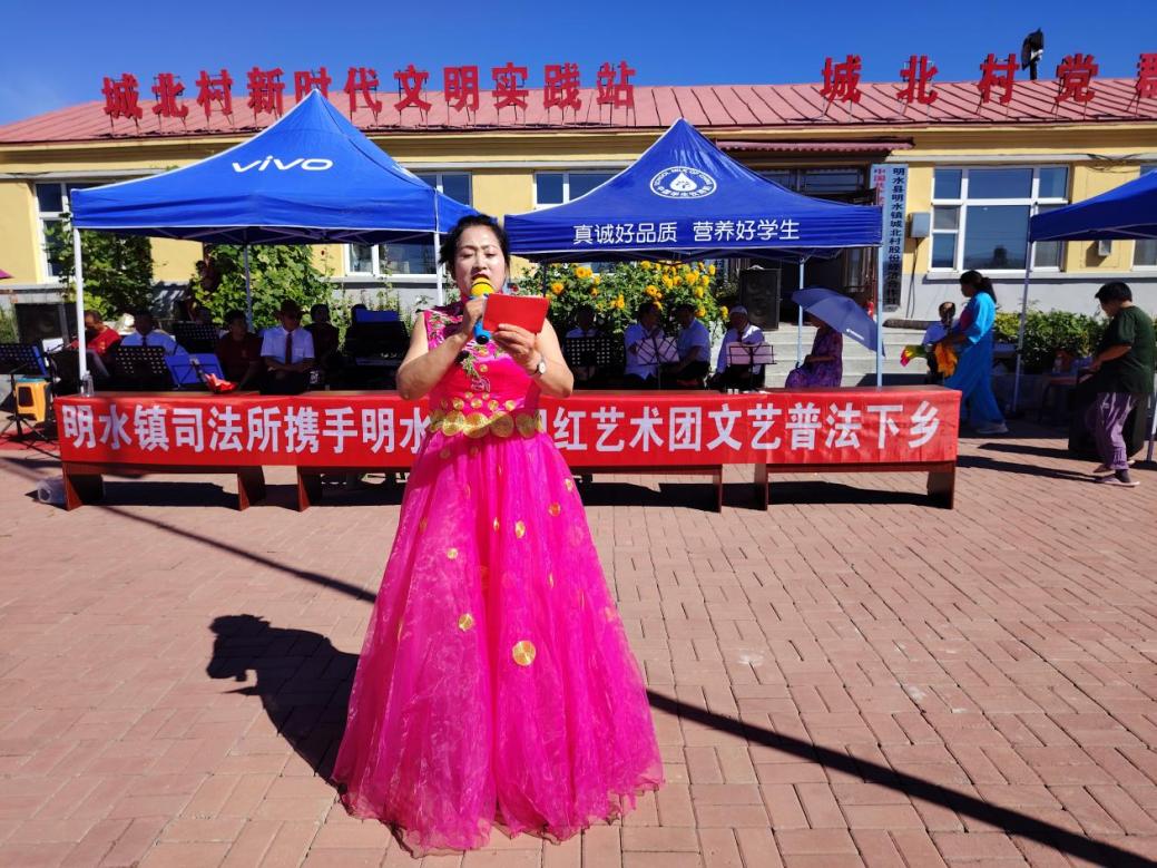 环球与瞭望讯(李宣忠 孙福全 高伟) 8月8日上午,黑龙江省明水县明水镇城北村委会大院热闹非凡,明水县司法局明水镇司法所联合夕阳红艺术团、城北村健身队开展的“文艺普法下乡”活动在此拉开帷幕。以歌曲、舞蹈、京剧演唱等群众喜闻乐见的文艺形式为载体,将法律知识融入精彩表演,200余名村民在欢声笑语中感受法治文化的熏陶,现场氛围热烈,法治理念深入人心。