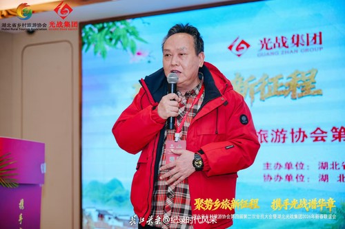 新进会员代表、三峡步步升布鞋文化村创始人李厚春表示,未来将严格履行会员义务,积极参与协会工作,践行“相识相遇新征程,携手光战谱华章”的承诺;新增理事代表、湖北工业职业技术学院旅游商贸学院罗立明教授表示,将立足人才培育本职,推动产教融合,为乡村旅游产业输送专业人才。 新增副会长单位代表、湖北东沃文化发展有限公司方羽先生表示,将依托自身资源优势,为协会发展与会员合作贡献力量,助力换届后协会影响力提升。 最后,执行会长兼秘书长万光战作总结讲话。他强调,本次大会是协会换届后的一次重要“集结号”,取得了三大核心成果:明确了发展方向、注入了新鲜活力、凝聚了行业合力。针对下一阶段工作,他部署了四项重点任务:一是聚焦党建引领,筑牢换届后发展根基;二是聚焦会员服务,提升换届后服务精准度;三是聚焦产业赋能,破解行业发展短板;四是聚焦规范运作,强化换届后自身建设。他要求全体会员强化责任担当、凝聚合力,以换届为新起点,共同推动湖北乡村旅游高质量发展。
