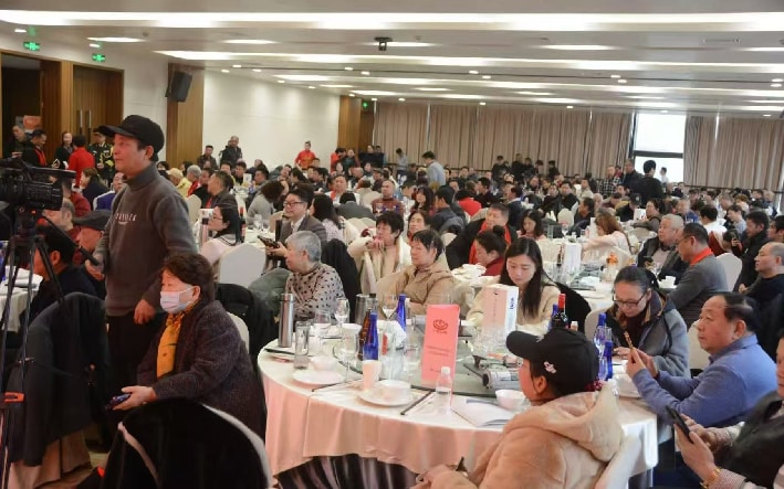 湖北省书法协会冠雅书院执行院长钟双飞现场馈赠书画墨宝《万马奔腾》 穿插其间的文艺节目与抽奖环节,则营造出浓厚的新年欢庆氛围。现代红艺术团的舞蹈《欢天喜地》、湖北大鼓的乡音韵味、灯笼舞《欢歌新时代》的喜庆洋溢,既展现了民营经济领域的文化风采,也放松了与会者身心。多轮抽奖环节更是高潮迭起,特等奖“飞茅升级版纪念酒”的揭晓,将现场气氛推向顶点。